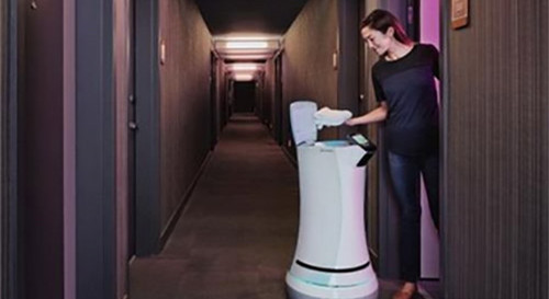 隨著“人工智能”時代的到來,以往只在工業領域出現的機器人,如今穿越工業生產線走向服務業,來到百姓身邊,讓人看得見也能摸得著。當您入住酒店時會發現,迎接您的或許不再是禮賓員,而是酒店服務機器人。酒店服務機器人已經慢慢地融入到酒店服務中,給客人帶來前所未有的智能化體驗。